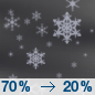 Temperature: 18°F Wind Speed: 9 to 14 mph Wind Direction: SW Forecast: A chance of snow between 7am and 1pm. Mostly cloudy, with a high near 18. Wind chill values as low as -1. Southwest wind 9 to 14 mph, with gusts as high as 25 mph. Chance of precipitation is 30%. |