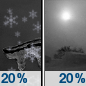 Temperature: 21°F Wind Speed: 8 to 17 mph Wind Direction: WNW Forecast: A slight chance of freezing rain before 9pm, then a slight chance of snow between 9pm and 1am, then patchy blowing snow and a slight chance of snow. Mostly cloudy. Low around 21, with temperatures rising to around 26 overnight. West northwest wind 8 to 17 mph. Chance of precipitation is 20%. |
