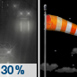 Temperature: 34°F Wind Speed: 7 to 21 mph Wind Direction: WNW Forecast: A chance of rain before 11pm. Mostly clear, with a low around 34. West northwest wind 7 to 21 mph, with gusts as high as 33 mph. Chance of precipitation is 30%. |