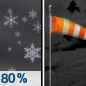 Temperature: 29°F Wind Speed: 6 mph Wind Direction: SSE Forecast: A slight chance of snow before 11pm, then a chance of rain and snow between 11pm and 2am, then rain and snow likely. Mostly cloudy, with a low around 29. South southeast wind around 6 mph. Chance of precipitation is 70%. |