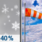 Temperature: 25°F Wind Speed: 21 to 26 mph Wind Direction: S Forecast: A chance of snow before noon. Mostly cloudy, with a high near 25. South wind 21 to 26 mph. Chance of precipitation is 40%. New snow accumulation of less than half an inch possible. |