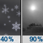 Temperature: 19°F Wind Speed: 13 mph Wind Direction: SE Forecast: A slight chance of snow. Mostly cloudy, with a high near 19. Southeast wind around 13 mph. Chance of precipitation is 20%. |