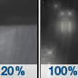 Temperature: 43°F Wind Speed: 10 mph Wind Direction: SW Forecast: Showers and thunderstorms likely. Mostly cloudy. Low around 43, with temperatures rising to around 45 overnight. Southwest wind around 10 mph, with gusts as high as 20 mph. Chance of precipitation is 60%. |