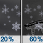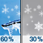 Temperature: 27°F Wind Speed: 6 mph Wind Direction: S Forecast: Snow showers likely between 7pm and 4am, then snow showers likely and a slight chance of freezing rain. Cloudy, with a low around 27. South wind around 6 mph. Chance of precipitation is 60%. New snow accumulation of less than one inch possible. |