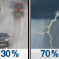 Temperature: 35°F Wind Speed: 5 mph Wind Direction: W Forecast: Showers and thunderstorms before midnight, then a slight chance of rain. Mostly cloudy, with a low around 35. Chance of precipitation is 80%. |