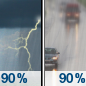 Temperature: 40°F Wind Speed: 5 to 10 mph Wind Direction: SSW Forecast: Showers and thunderstorms before 10pm, then rain between 10pm and 4am, then showers and thunderstorms. Cloudy, with a low around 40. South southwest wind 5 to 10 mph, with gusts as high as 20 mph. Chance of precipitation is 100%. New rainfall amounts between a quarter and half of an inch possible. |