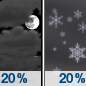 Temperature: 37°F Wind Speed: 6 mph Wind Direction: NE Forecast: A slight chance of rain before 10pm, then rain and snow likely between 10pm and 1am, then rain and snow. Cloudy, with a low around 37. Northeast wind around 6 mph. Chance of precipitation is 90%. New rainfall amounts between a quarter and half of an inch possible. |