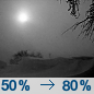 Temperature: -1°F Wind Speed: 13 to 16 mph Wind Direction: WSW Forecast: A slight chance of snow. Mostly cloudy, with a low around -1. West southwest wind 13 to 16 mph. Chance of precipitation is 20%. |