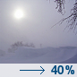 Temperature: 20°F Wind Speed: 15 to 24 mph Wind Direction: S Forecast: Patchy blowing snow between 9am and noon, then a chance of snow and patchy blowing snow. Partly sunny, with a high near 20. South wind 15 to 24 mph, with gusts as high as 37 mph. Chance of precipitation is 40%. New snow accumulation of less than half an inch possible. |