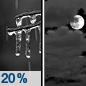 Temperature: 26°F Wind Speed: 10 mph Wind Direction: SSE Forecast: A slight chance of freezing rain between 9pm and 11pm. Mostly cloudy. Low around 26, with temperatures rising to around 29 overnight. South southeast wind around 10 mph. Chance of precipitation is 20%. Little or no ice accumulation expected. |