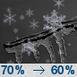 Temperature: 35°F Wind Speed: 5 to 10 mph Wind Direction: SW Forecast: Snow likely between 7am and 1pm, then rain and snow likely. Cloudy. High near 35, with temperatures falling to around 33 in the afternoon. Southwest wind 5 to 10 mph. Chance of precipitation is 70%. New snow accumulation of 1 to 3 inches possible. |