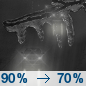 Temperature: 30°F Wind Speed: 6 mph Wind Direction: E Forecast: Freezing rain and rain and a slight chance of sleet. Cloudy, with a low around 30. Chance of precipitation is 90%. |