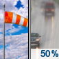 Temperature: 42°F Wind Speed: 10 to 22 mph Wind Direction: SW Forecast: A chance of rain after noon. Mostly cloudy, with a high near 42. Southwest wind 10 to 22 mph, with gusts as high as 36 mph. Chance of precipitation is 50%. |