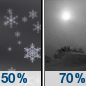 Temperature: 4°F Wind Speed: 5 to 8 mph Wind Direction: S Forecast: A slight chance of snow. Mostly cloudy, with a low around 4. |