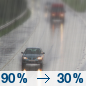 Temperature: 51°F Wind Speed: 18 mph Wind Direction: W Forecast: Rain before 1pm. Partly sunny, with a high near 51. Chance of precipitation is 90%. |