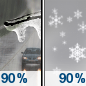 Temperature: 27°F Wind Speed: 2 to 9 mph Wind Direction: E Forecast: A slight chance of snow showers before 7am, then snow likely between 7am and 1pm, then snow and a slight chance of freezing rain. Cloudy, with a high near 27. Chance of precipitation is 90%. |
