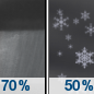 Temperature: 27°F Wind Speed: 3 to 7 mph Wind Direction: N Forecast: Rain showers likely before 1am, then a chance of snow showers. Mostly cloudy, with a low around 27. Chance of precipitation is 70%. |