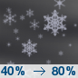 Temperature: 20°F Wind Speed: 10 to 15 mph Wind Direction: S Forecast: Snow showers after 7pm. Mostly cloudy, with a low around 20. |