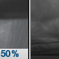 Forecast: Rain showers after 10am. Cloudy, with a high near 50. Southwest wind 5 to 10 mph. Chance of precipitation is 90%. New rainfall amounts between a quarter and half of an inch possible.