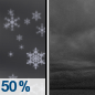 Temperature: 31°F Wind Speed: 0 to 5 mph Wind Direction: S Forecast: A chance of snow showers. Mostly cloudy, with a high near 31. |