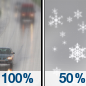 Temperature: 41°F Wind Speed: 9 mph Wind Direction: E Forecast: Snow likely before 11am, then rain and snow. Mostly cloudy, with a high near 41. Chance of precipitation is 90%. New snow accumulation of less than half an inch possible. |