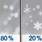 Temperature: 33°F Wind Speed: 5 to 10 mph Wind Direction: E Forecast: A chance of snow and a slight chance of freezing rain between 7am and 1pm, then snow and freezing rain and a slight chance of sleet. Cloudy, with a high near 33. Chance of precipitation is 80%. |
