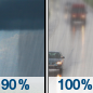Temperature: 47°F Wind Speed: 6 to 10 mph Wind Direction: SSE Forecast: Rain showers. Mostly cloudy. High near 47, with temperatures falling to around 45 in the afternoon. South southeast wind 6 to 10 mph. Chance of precipitation is 90%. New rainfall amounts between a tenth and quarter of an inch possible. |