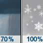 Temperature: 13°F Wind Speed: 15 to 25 mph Wind Direction: W Forecast: A chance of rain and snow showers. Cloudy, with a low around 13. Wind chill values as low as -4. West wind 15 to 25 mph, with gusts as high as 40 mph. Chance of precipitation is 40%. New snow accumulation of less than half an inch possible. |
