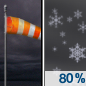 Temperature: 0°F Wind Speed: 14 to 30 mph Wind Direction: NW Forecast: A chance of snow before 10pm. Mostly cloudy, with a low around 0. Wind chill values as low as -20. Northwest wind 14 to 30 mph, with gusts as high as 43 mph. Chance of precipitation is 40%. New snow accumulation of less than half an inch possible. |