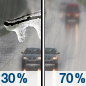 Temperature: 25°F Wind Speed: 5 to 10 mph Wind Direction: W Forecast: Rain likely. Mostly cloudy, with a low around 25. Chance of precipitation is 70%. |
