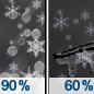 Temperature: 36°F Wind Speed: 2 to 6 mph Wind Direction: S Forecast: A slight chance of snow showers before 7am. Mostly cloudy, with a high near 36. South wind 2 to 6 mph. Little or no ice accumulation expected. |