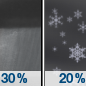 Temperature: 40°F Wind Speed: 15 to 20 mph Wind Direction: NW Forecast: Scattered rain and snow showers after noon. Partly sunny, with a high near 40. Northwest wind 15 to 20 mph, with gusts as high as 30 mph. Chance of precipitation is 40%. |
