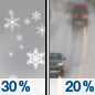 Temperature: 30°F Wind Speed: 7 to 14 mph Wind Direction: W Forecast: A slight chance of rain and snow before 7am. Partly sunny, with a high near 30. |