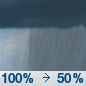 Temperature: 36°F Wind Speed: 5 to 10 mph Wind Direction: S Forecast: Showers and thunderstorms. Cloudy, with a low around 36. Chance of precipitation is 100%. |
