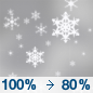 Temperature: 30°F Wind Speed: 5 to 10 mph Wind Direction: N Forecast: Snow. Mostly cloudy. High near 30, with temperatures falling to around 23 in the afternoon. North wind 5 to 10 mph. Chance of precipitation is 100%. New snow accumulation of around one inch possible. |