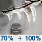Temperature: 30°F Wind Speed: 3 mph Wind Direction: NE Forecast: A slight chance of rain between 1am and 4am, then a slight chance of freezing rain. Mostly cloudy, with a low around 30. Northeast wind around 3 mph. Chance of precipitation is 20%. |