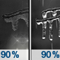 Temperature: 29°F Wind Speed: 5 to 8 mph Wind Direction: S Forecast: Rain showers likely before 7pm, then freezing rain. Cloudy, with a low around 29. Chance of precipitation is 90%. |
