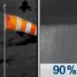Temperature: 40°F Wind Speed: 25 to 35 mph Wind Direction: SSW Forecast: Partly cloudy, with a low around 40. South southwest wind 25 to 35 mph, with gusts as high as 48 mph. |