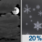 Temperature: 24°F Wind Speed: 10 to 15 mph Wind Direction: S Forecast: A slight chance of snow showers after midnight. Mostly cloudy, with a low around 24. |