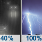 Temperature: 42°F Wind Speed: 10 to 16 mph Wind Direction: SSW Forecast: Rain before 10pm, then showers and thunderstorms between 10pm and 4am, then rain. Cloudy, with a low around 42. |