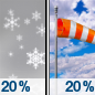 Temperature: 20°F Wind Speed: 7 mph Wind Direction: WNW Forecast: Partly cloudy, with a low around 20. West northwest wind around 7 mph. |
