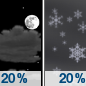 Temperature: 35°F Wind Speed: 2 mph Wind Direction: W Forecast: A slight chance of snow between 10am and 4pm, then a slight chance of rain and snow. Mostly cloudy, with a high near 35. Chance of precipitation is 20%. |