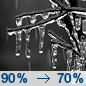 Temperature: 14°F Wind Speed: 14 mph Wind Direction: W Forecast: Snow showers likely. Mostly cloudy, with a low around 14. Chance of precipitation is 70%. |
