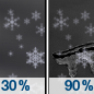 Temperature: 27°F Wind Speed: 2 to 6 mph Wind Direction: S Forecast: A chance of snow before 8pm, then a chance of snow showers between 8pm and 11pm, then snow between 11pm and 4am, then snow and sleet between 4am and 5am, then snow likely and freezing rain likely. Cloudy, with a low around 27. South wind 2 to 6 mph. Chance of precipitation is 90%. New snow accumulation of less than half an inch possible. Little or no ice accumulation expected. |