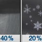 Temperature: 39°F Wind Speed: 5 to 8 mph Wind Direction: SW Forecast: A chance of freezing rain before 7am, then a chance of rain showers. Mostly cloudy, with a high near 39. Chance of precipitation is 40%. |