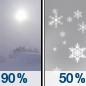 Temperature: 26°F Wind Speed: 5 to 10 mph Wind Direction: S Forecast: A chance of snow showers after 7pm. Mostly cloudy, with a low around 26. |