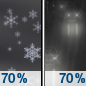 Temperature: 31°F Wind Speed: 3 to 7 mph Wind Direction: SW Forecast: A chance of snow between 7pm and 9pm, then rain likely between 9pm and 1am, then a chance of drizzle between 1am and 3am, then a chance of freezing drizzle and a chance of drizzle between 3am and 4am. Mostly cloudy. Low around 31, with temperatures rising to around 33 overnight. Southwest wind 3 to 7 mph. Chance of precipitation is 70%. |