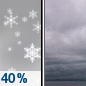 Temperature: 37°F Wind Speed: 10 mph Wind Direction: S Forecast: A chance of snow before noon. Cloudy, with a high near 37. South wind around 10 mph. Chance of precipitation is 40%. |