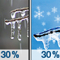 Temperature: 30°F Wind Speed: 12 to 15 mph Wind Direction: W Forecast: A chance of freezing rain before 1pm, then a slight chance of snow showers. Mostly cloudy, with a high near 30. Chance of precipitation is 30%. |