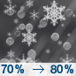 Temperature: 11°F Wind Speed: 15 mph Wind Direction: W Forecast: Snow likely before 7pm, then a chance of snow showers. Mostly cloudy, with a low around 11. West wind around 15 mph, with gusts as high as 31 mph. Chance of precipitation is 70%. |